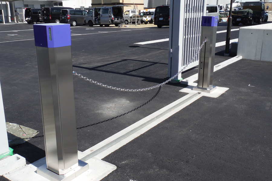 いつまでも美しい景観をキープするステンレス製本体材質に加え、各種警報装置・安全装置を標準搭載。動作中をお知らせする警告ブザー・障害物感知センサーなど安全・安心なチェーンゲートシステムです。